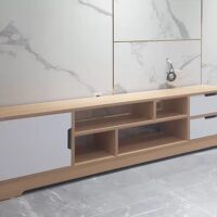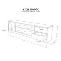 - Kệ tivi gồm 2 ngăn kéo ray bi 3 tầng giảm chấn và 1 cánh tủ sử dụng bản lề giảm chấn.