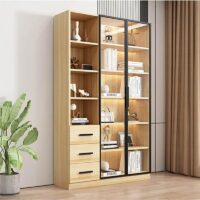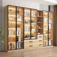 Tủ hồ sơ gỗ cửa kính khung nhôm là lựa chọn lý tưởng cho không gian làm việc hiện đại hoặc phòng khách sang trọng. Thiết kế tinh tế với tông màu gỗ sáng tự nhiên kết hợp viền nhôm đen mang lại cảm giác thanh lịch, trẻ trung. Phần tủ kính giúp trưng bày sách, tài liệu hoặc vật phẩm trang trí một cách gọn gàng và nổi bật nhờ hệ thống đèn LED âm bên trong. Bên cạnh đó, các ngăn kéo bên trái giúp lưu trữ hồ sơ, giấy tờ kín đáo, tiện lợi cho công việc hàng ngày.
