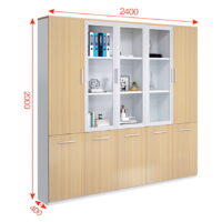 Phần tủ trên sử dụng kính trong cường lực, dễ dàng quan sát tài liệu hoặc trưng bày vật dụng trang trí. Phần tủ dưới là cánh gỗ kín giúp lưu trữ hồ sơ, giấy tờ một cách gọn gàng, đảm bảo sự ngăn nắp và thẩm mỹ cho văn phòng.