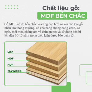 | Chất liệu | Gỗ công nghiệp MDF lõi xanh chống ẩm, bề mặt phủ Melamine cao cấp |