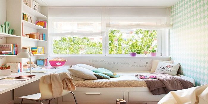 Bạn chỉ cần bố trí những món đồ nội thất cần thiết như bàn ghế, giường tủ, kệ sách gọn gàng phù hợp với kích thước căn phòng để có thể đựng đồ và dễ dàng dọn dẹp. Không bày biện quá nhiều đồ trang trí nhỏ, dễ vỡ để tránh trường hợp trẻ chạy nhảy va vào làm đổ.