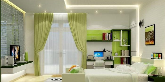 Nếu bạn chọn thiết kế phòng ngủ trẻ trung thì màu xanh có thể là gợi ý đầu tiên. Màu xanh lá cây đơn giản sẽ làm cho phòng ngủ của bạn trở nên ấn tượng hơn rất nhiều.